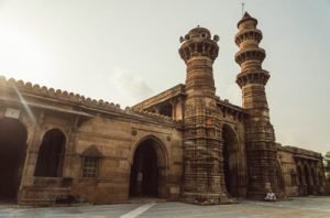 Ahmedabad: Gujarat. Ahmedabad was historically known as Karnavati before it was founded by Sultan Ahmed Shah. Ahmedabad is famous for the Jumma Masjid (built by the city’s founder Sultan Ahmed Shah in 1423); Rani Rupmati Masjid at Mirzapur (built between 1430 and 1440); Sidi Bashir’s Mosque (famous for its “shaking minarets”); Teen Darwaza, Rani Sipri Mosque; Haibat Khan Mosque; Ahmed Shah’s Tomb; Bhadra Fort; Three Gates (the triple-arched gateway built by Sultan Ahmed Shah); Kankaria Lake (constructed in 1451 by Sultan Qutb-ud-Din) with an island-garden and a summer palace known as Nagina Wadi; Swaminarayan Temple; Hatheesingh Jain Temple; Shah Jehan’s Shahibagh Palace; Sabarmati or Satyagraha Ashram (Set up in 1915 on the banks of the river Sabarmati, it was the nerve center of India’s freedom movement. Mahatma Gandhi started his famous Dandi March from this place in 1930); Calico Textile Museum; Adalaj Step-well; Nal Sarovar bird sanctuary, Kankaria Lake, Shamlaji (which is one of the principal Vaishnava shrines of Gujarat), Doshi’s Gandhi Labour Institute and Kamala Nehru Zoological Park.