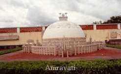 Amravati: Andhra Pradesh. Located 30 miles from Vijayawada on the right bank of the Krishna River, Amravati (or Amaresvaram) houses one of the best-known Buddhist relics. Also known as Dhanyakatakam and “Deepaladinne”, it was the capital of the later day Satavahanas and was considered as the most sacred Buddhist pilgrimage center in India. Amravati is most famous for the largest Stupa in the country, the Mahachaitya Stupa, built during the 2nd century BC. The Stupa was discovered in 1797 by the British archaeologist Colonel Colin Mackenzie. Amravati is also famous for the temple of Amareswara, which consists of a massive Lingam. The extensive mounds of Dharankota located on the west of Amravati, together with Nagarjunakonda and Amravati form the Golden Triangle of Buddhism in Andhra Pradesh. About five kilometers from Amravati lies the cave temple of Lord Venkateswara at Vaikuntapuram. Mangalgiri, located en route to Vijayawada, is famous for its ancient Panakaalaswamy temple.